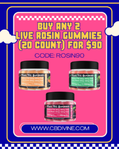 CBDivine makes it easy to stock up on your favorite gummies with their exclusive promo code ROSIN90. Purchase any two 20-count live rosin gummies for just $90 and enjoy premium quality at an unbeatable price.