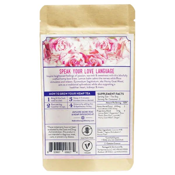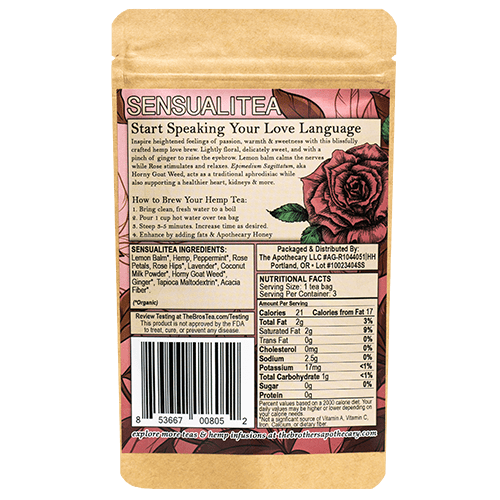Inspire heightened feelings of passion, warmth & sweetness with this blissfully crafted CBD Rose Tea. Lightly floral, delicately sweet, and with a pinch of Ginger spice to raise the eyebrow. Sensualitea is made with several aphrodisiacs, from the stimulating yet relaxing Rose to the libido-boosting Epimedium Sagittatum, aka “Horny Goat Weed”. Ideal for both men & women!