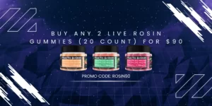 - Purchase Any 2 Live Rosin Gummies (20 Count) for $90 using promo code: ROSIN90.